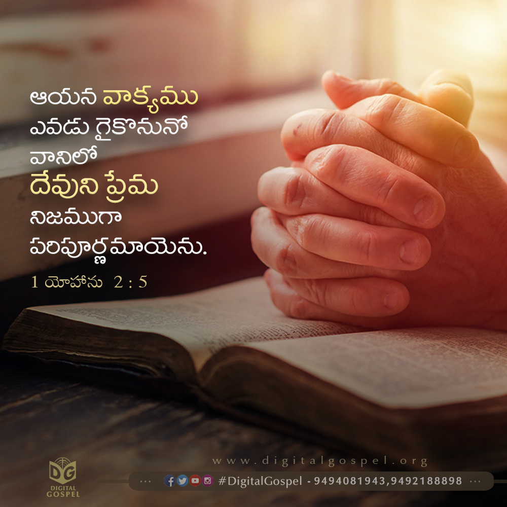 ఆయన వాక్యము ఎవడు గైకొనునో వానిలో దేవుని ప్రేమ నిజముగా పరిపూర్ణమాయెను. – 1 యోహాను 2:5
