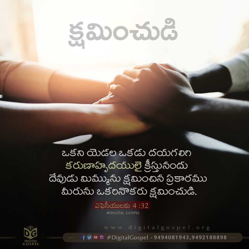 Views from 30-08-2021: 891 Download Now ఒకని యెడల ఒకడు దయగలిగి కరుణాహృదయులై క్రీస్తునందు దేవుడు మిమ్మును క్షమించిన ప్రకారము మీరును ఒకరినొకరు క్షమించుడి. – ఎఫెసీయులకు 4:32And be kind to one another, tenderhearted, forgiving one another, just as God in Christ forgave you. – Ephesians 4:32 Facebook WhatsApp Gmail Twitter Prev Post Ephesians 2:8 Next Post John 5:39 Related Posts Psalms 59:16 Proverbs 8:33 2 Corinthians 6:1 Comments are closed.