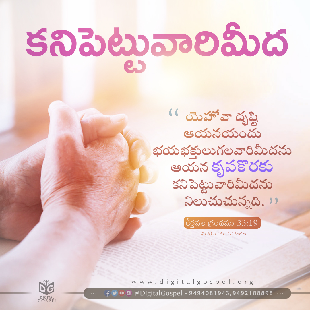 Views from 30-08-2021: 767 Download Now యెహోవా దృష్టి ఆయనయందు భయభక్తులుగలవారి మీదను ఆయన కృప కొరకు కనిపెట్టువారిమీదను నిలుచుచున్నది. – కీర్తనలు 33:19 Behold, the eye of the LORD is on those who fear Him, On those who hope in His mercy. – Psalms 33:19 Facebook WhatsApp Gmail Twitter Prev Post Pakshulakevaru aaharamichenu Song Track || Telugu Christian Songs Tracks || Digital Gospel Next Post Isaiah 38:5 Related Posts Psalms 59:16 Proverbs 8:33 2 Corinthians 6:1 Comments are closed.