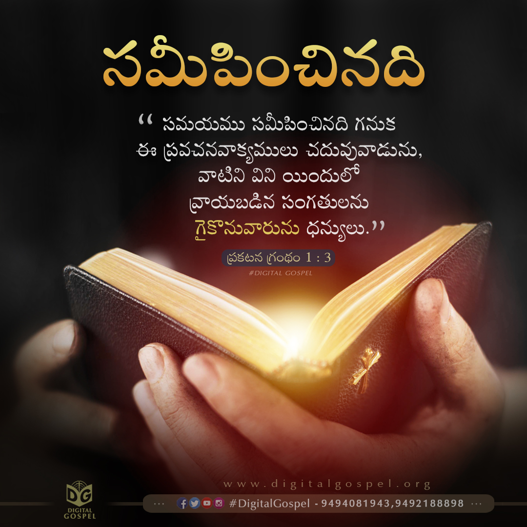 సమయము సమీపించినది గనుక ఈ ప్రవచనవాక్యములు చదువువాడును, వాటిని విని యిందులో వ్రాయబడిన సంగతులను గైకొనువారును ధన్యులు. – ప్రకటన 1:3