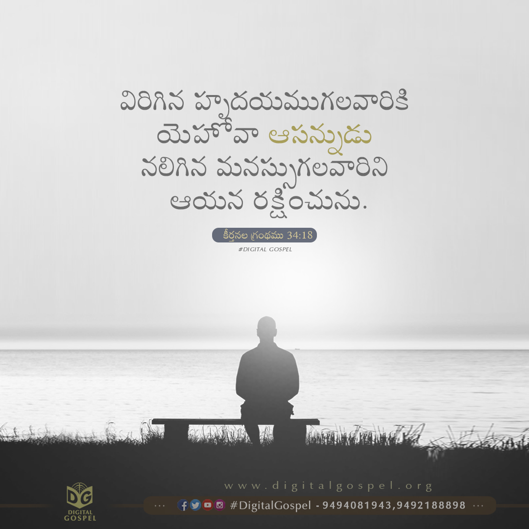 Views from 30-08-2021: 1,009 Download Now విరిగిన హృదయముగలవారికి యెహోవా ఆసన్నుడు నలిగిన మనస్సుగలవారిని ఆయన రక్షించును. – కీర్తనలు 34:18 The LORD is near to those who have a broken heart, And saves such as have a contrite spirit. – Psalms 34:18 Facebook WhatsApp Gmail Twitter Prev Post Proverbs 1:33 Next Post Proverbs 12:28 Related Posts Psalms 59:16 Proverbs 8:33 2 Corinthians 6:1 Comments are closed.