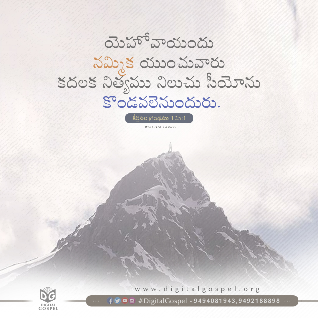 Views from 30-08-2021: 791 Download Now యెహోవాయందు నమ్మిక యుంచువారు కదలక నిత్యము నిలుచు సీయోను కొండవలెనుందురు. – కీర్తనలు 125:1 Those who trust in the LORD Are like Mount Zion, Which cannot be moved, but abides forever. – Psalms 125:1 Facebook WhatsApp Gmail Twitter Prev Post Ephesians 5:11 Next Post Prardhana Korakai Prakshalana Audio Song || Telugu Christian Audio Song || Digital Gospel Related Posts Psalms 59:16 Proverbs 8:33 2 Corinthians 6:1 Comments are closed.