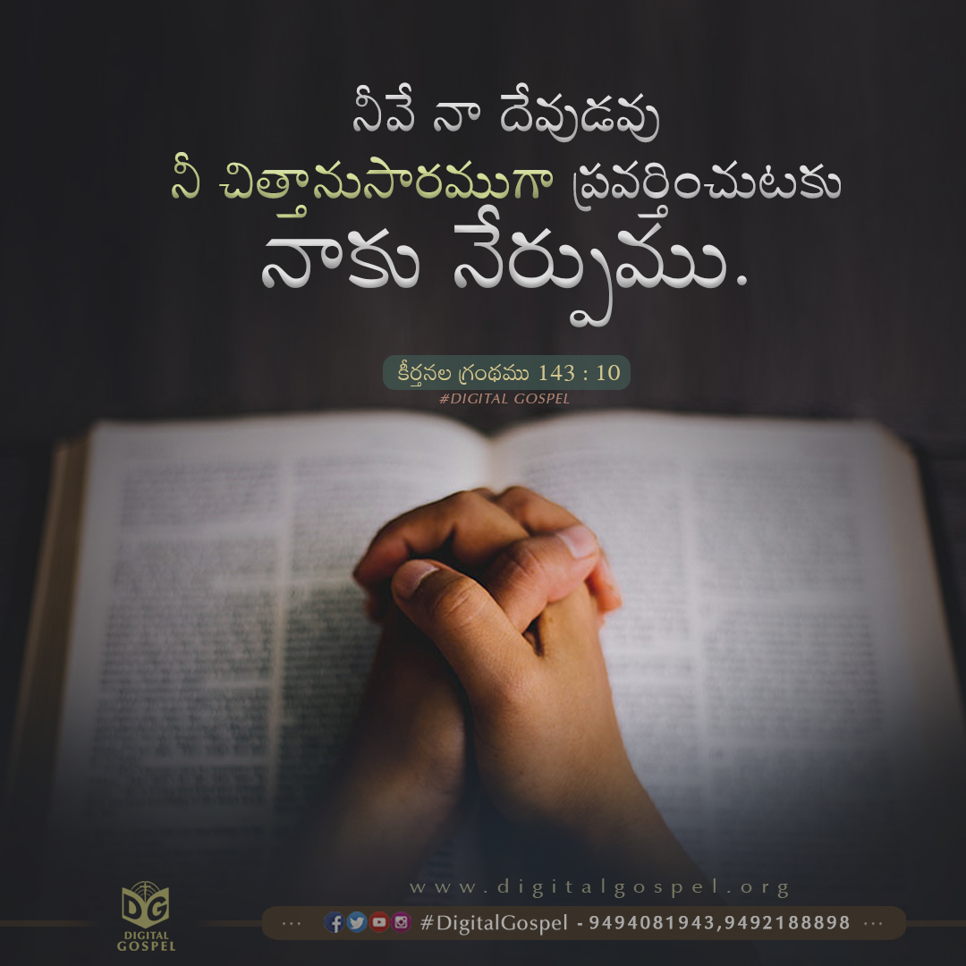 Views from 30-08-2021: 902 Download Now నీవే నా దేవుడవు నీ చిత్తానుసారముగా ప్రవర్తించుటకు నాకు నేర్పుము. – కీర్తనలు 143:10 Teach me to do Your will, For You are my God. – Psalms 143:10 Facebook WhatsApp Gmail Twitter Prev Post Psalms 63:8 Next Post 1 Peter 4:8 Related Posts Psalms 59:16 Proverbs 8:33 2 Corinthians 6:1 Comments are closed.